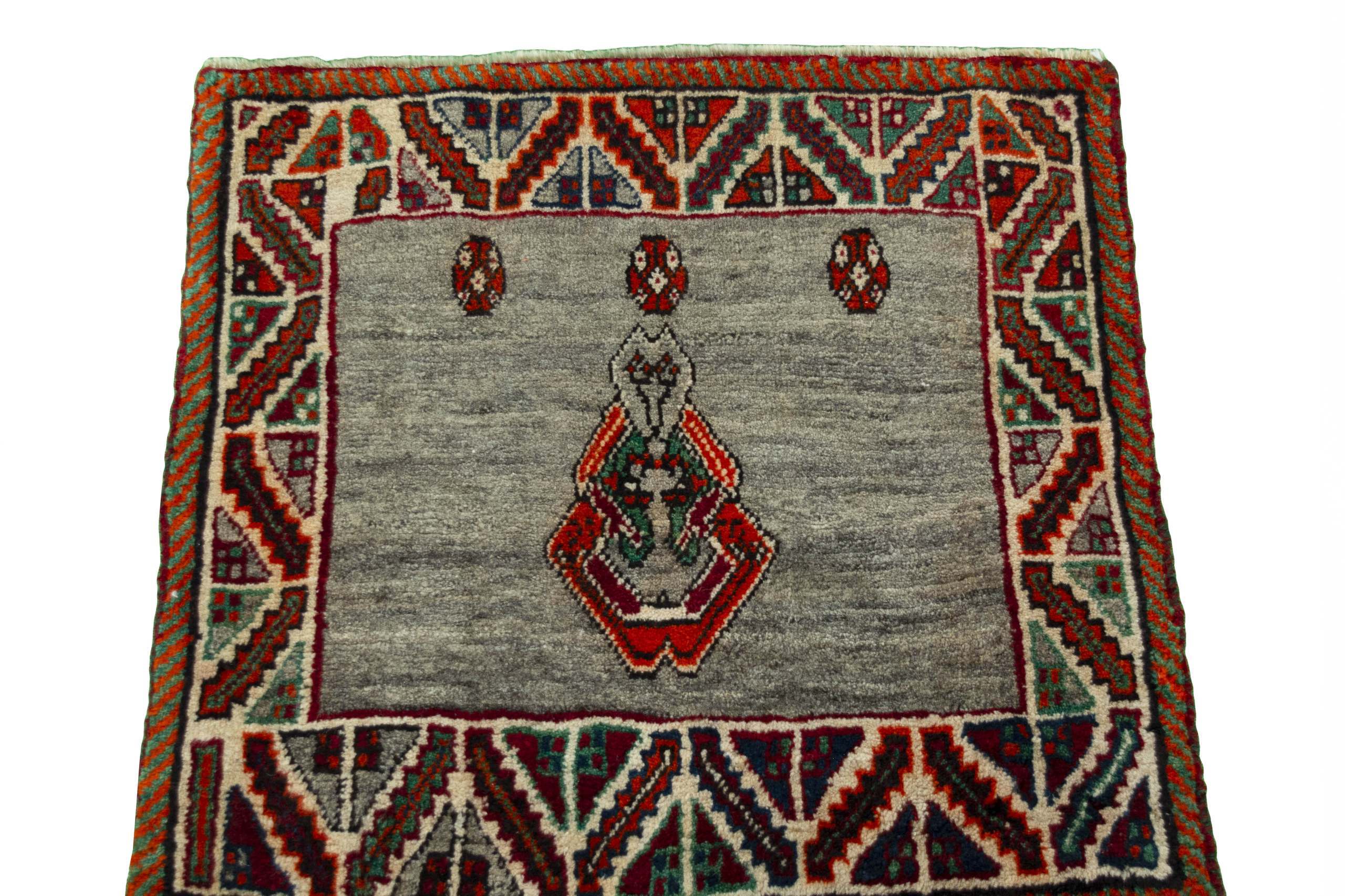Com padrões simples e geométricos, o Gabbeh apresenta campos amplos de cor, com uma paleta vibrante que inclui amarelos e vermelhos, criando um efeito visual único que varia conforme a luz e a perspectiva. O design é inspirado pela natureza e pelas tradições, com formas que lembram animais e símbolos geométricos.