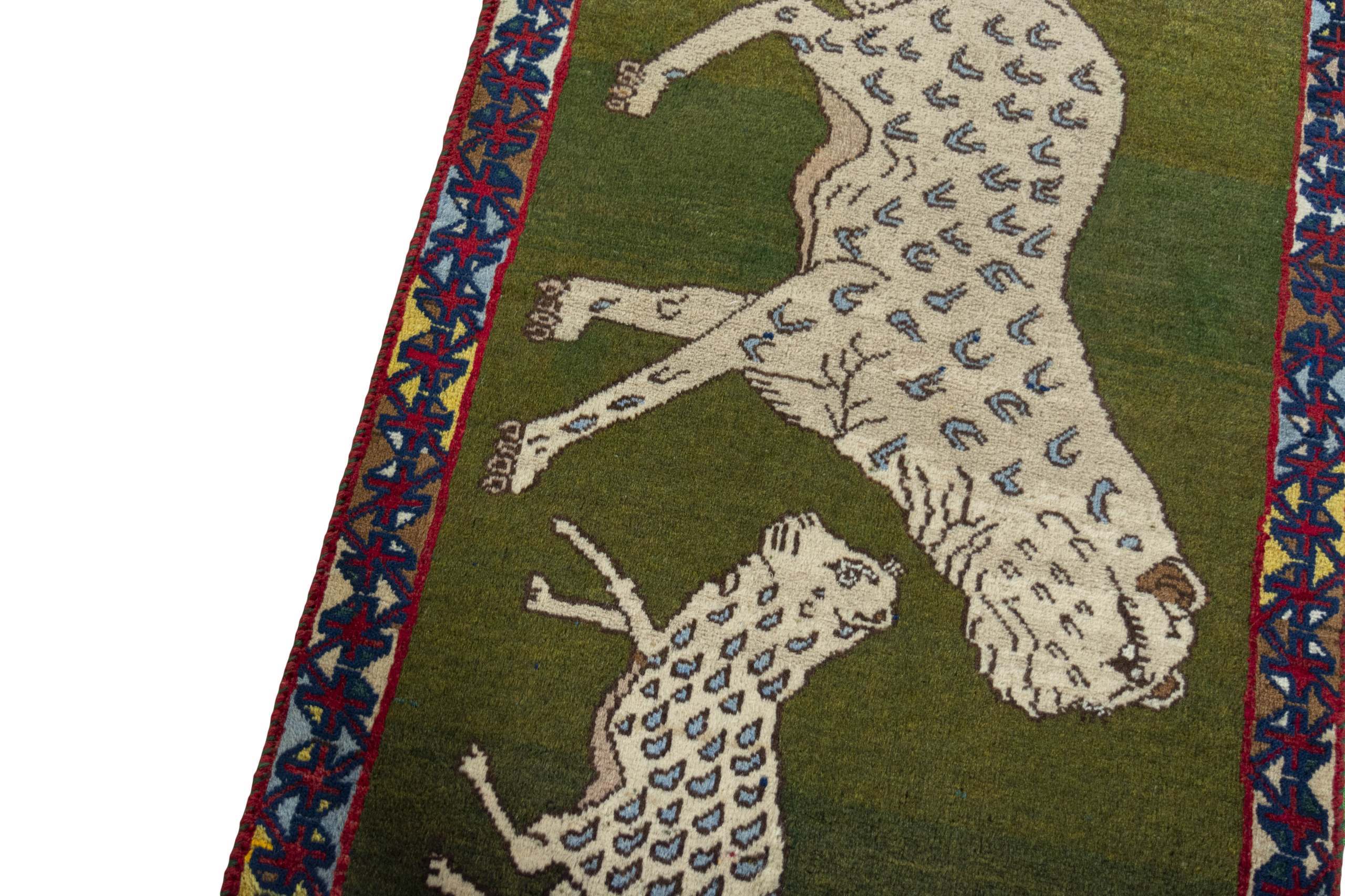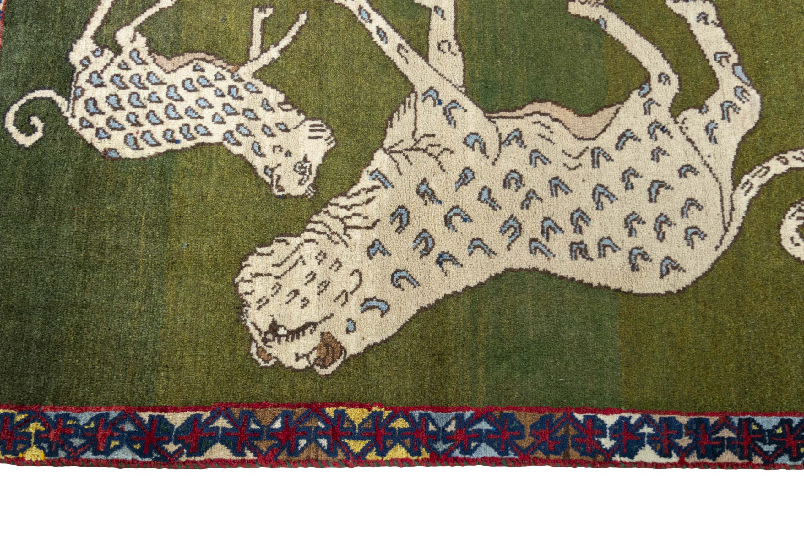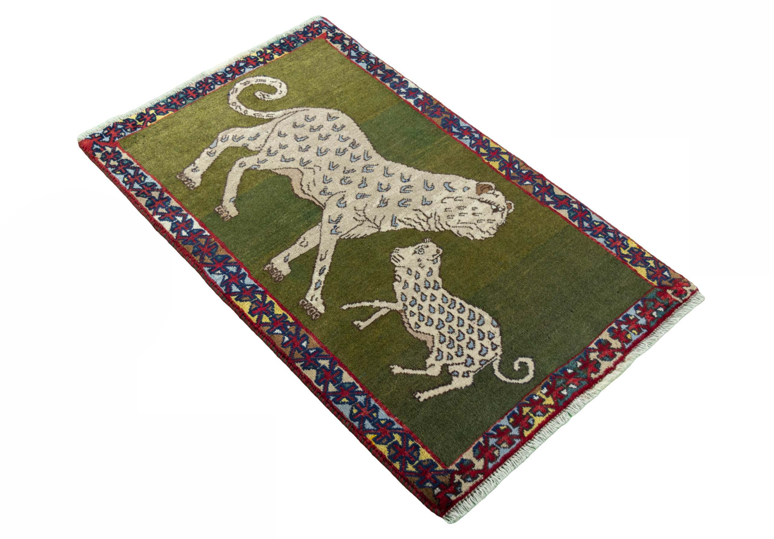 Com padrões simples e geométricos, o Gabbeh apresenta campos amplos de cor, com uma paleta vibrante que inclui amarelos e vermelhos, criando um efeito visual único que varia conforme a luz e a perspectiva. O design é inspirado pela natureza e pelas tradições, com formas que lembram animais e símbolos geométricos.